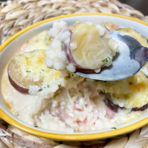 一つ前のクリームシチューをご飯にのせて、ドリアにアレンジしても美味しそうですね。
