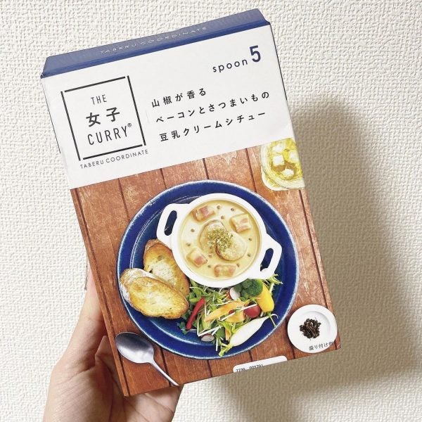 続いても「THE女子CURRY」シリーズから、「ベーコンとさつまいもの豆乳クリームシチュー」です。