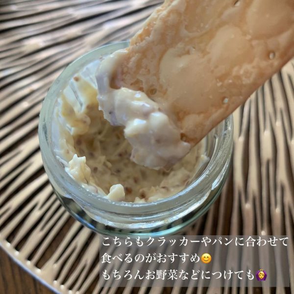 朝食シーンにはパンにさっと付けたり、おつまみにはクラッカーにのせたりとアレンジも楽しめそう。