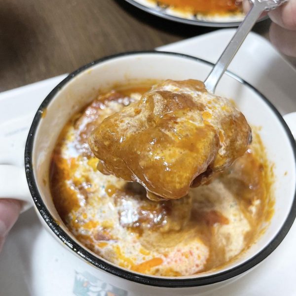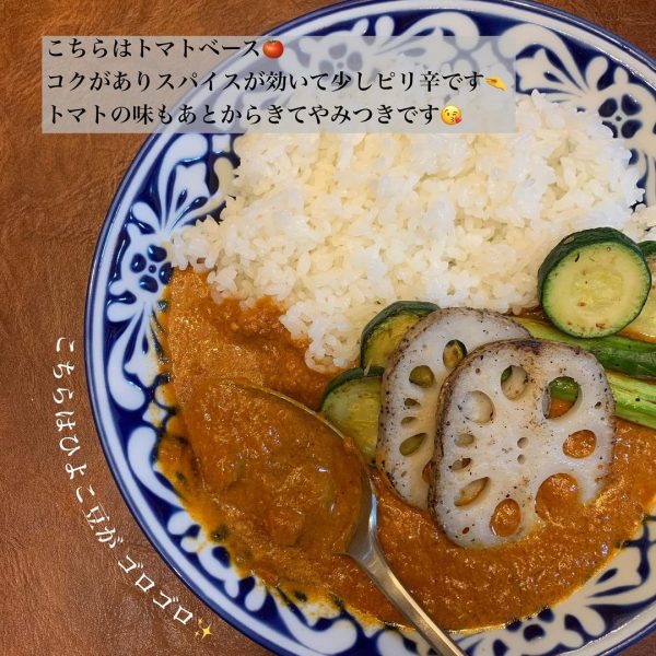 こちらはトマトベースのカレーになりますが、スパイスが効いたピリ辛味。
