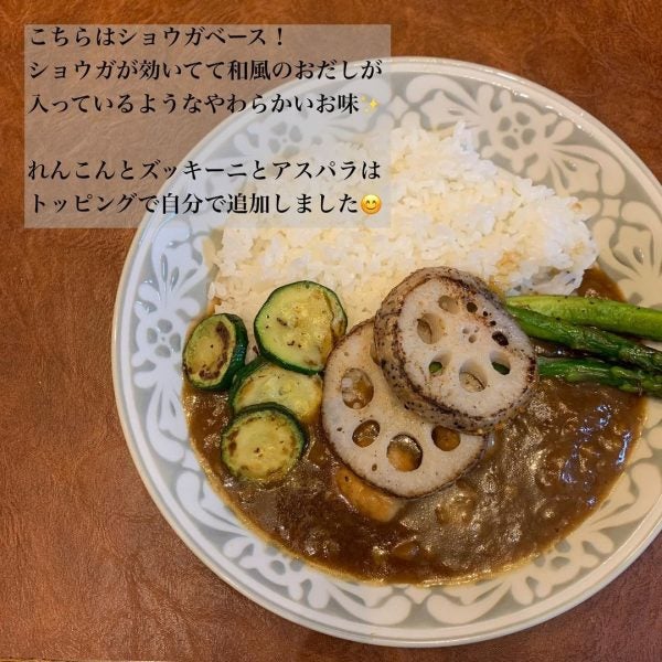一つ前の和風カレーを使った、メインメニューです。ショウガベースになっている和風味で、マイルドな味わいを楽しめそう。