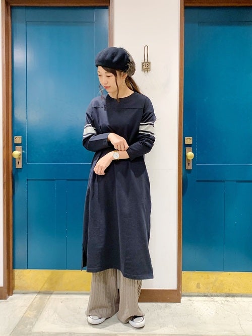 一見ボーイッシュコーディネートには不向きな印象の強いワンピースですが、イージーなプリーツワイドパンツをボトムスにセレクトすれば、コンフォートなムード漂うボーイッシュコーデに。