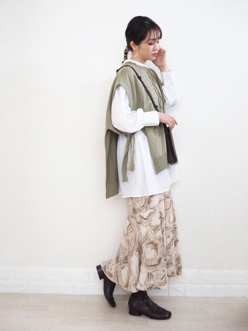 マーブル柄スカートは、コーディネートの主役になるアイテム。