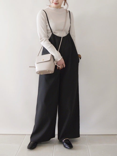 さらっとしたツイル素材のサロペットは、簡単に高見えが狙えますよ。