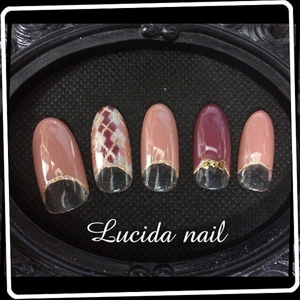ボルドーのチェックの中に、ゴールドのラメを入れるとポイントになりますね♪
