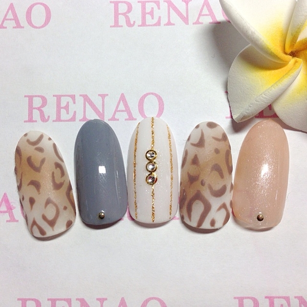 べっこうネイルとホワイトの、やわらかいカラーの組み合わせです