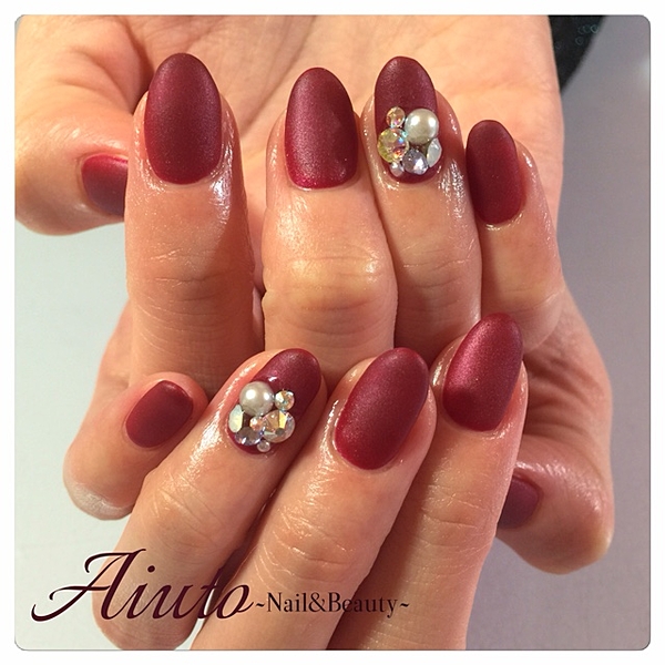 ボルドーの1色塗りでシンプルにした上品ネイル
