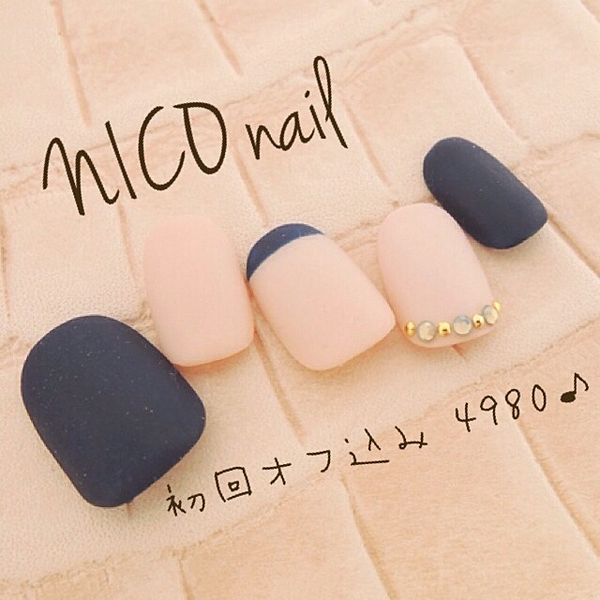 シンプルな中に、根元に入れたネイビーの太ラインがオシャレ!!