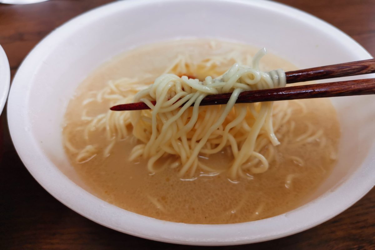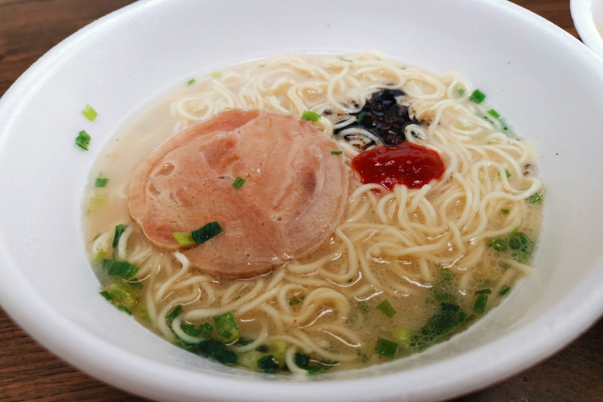 また、スープだけでなく麺もめちゃくちゃウマい。しかも一蘭より量が多く、チャーシューも入っているため満足感がある。また、タレも辛味噌と黒香油の2種類あるので、途中の味変もできて最高だ。