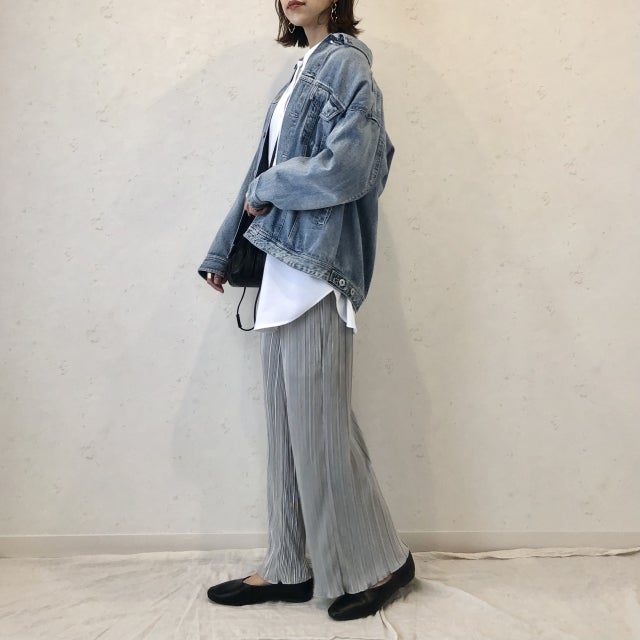 横からのシルエットも、デニジャケからのレイヤードが見えるとトレンド感が増します。