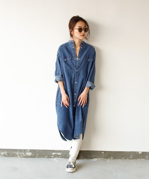 デニムシャツのワンピースは、ほどよいヌケ感がありリラックス感のあるおしゃれウェア。