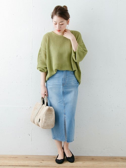 ほっそりとタイトなデニムスカートは、大人カジュアルの強い味方!