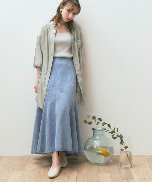 デニムの重いイメージを払拭する、やわらかなマーメイドラインのデニムスカートです。