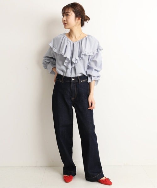 たっぷりのフリルブラウスの甘さをデニムが抑えてくれていますね。