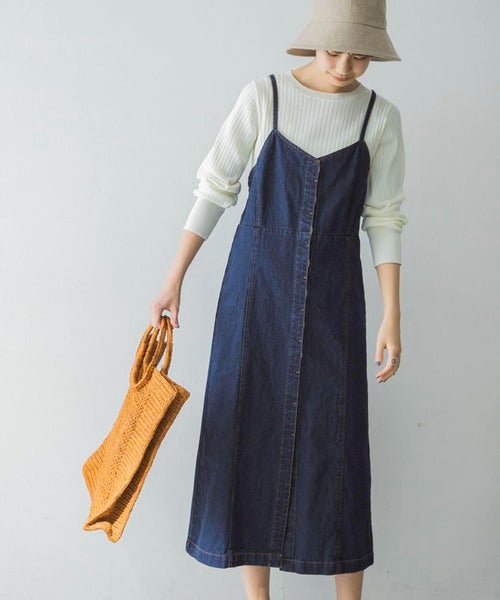 トレンドのキャミソールワンピースも、デニム地だと他の人と差をつけたコーデになりますよ。