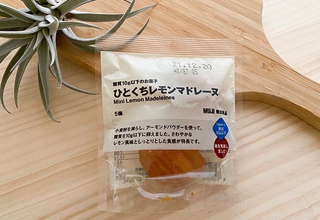 大好評の無印良品の「糖質10g以下のお菓子シリーズ」より、味が改良されて発売された「ひとくちレモンマドレーヌ」。