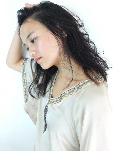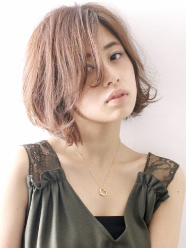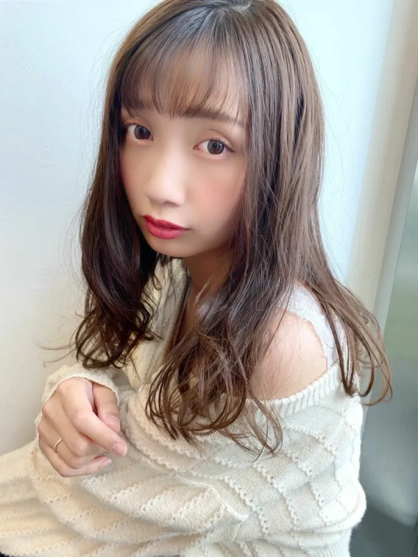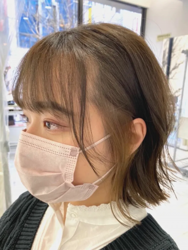 長く伸ばした前髪と丸みのあるシルエットという落ち着きのあるヘアスタイルに軽やかな風合いを入れてくれる髪色です。