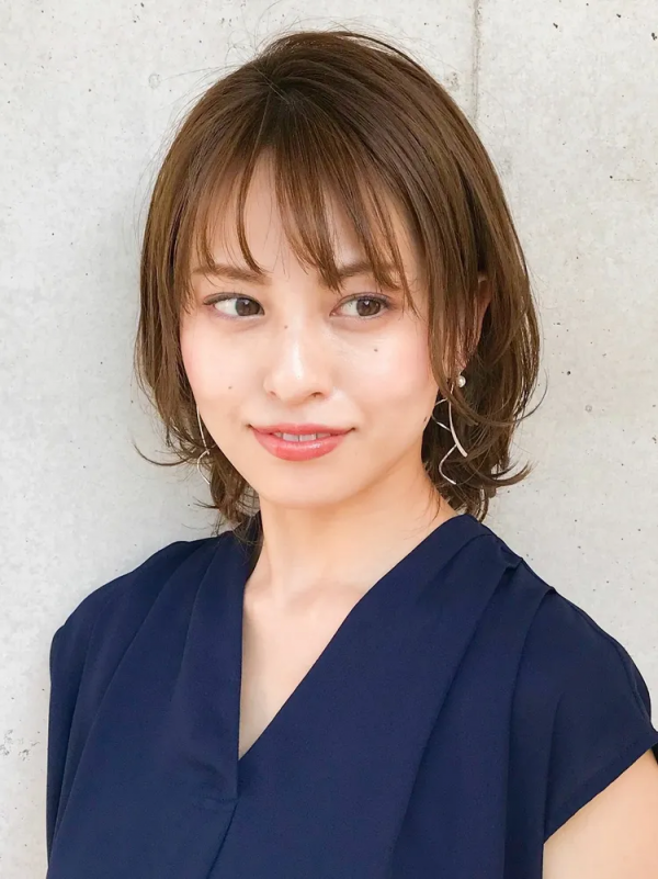 短めの前髪と内巻きの毛先がキュートな印象ですが、透明感が出やすいショコラブラウンの髪色のおかげであざとさのないピュアな雰囲気に。