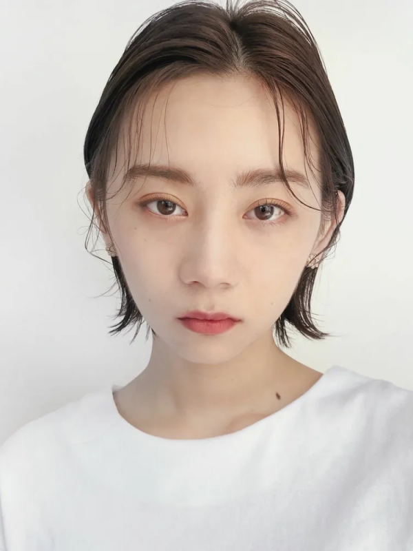 そんなシンプルなヘアスタイルに、トレンド感をつけるのが前髪の表情。こちらでは長めの前髪に束感をつけて、おしゃれに仕上げています。