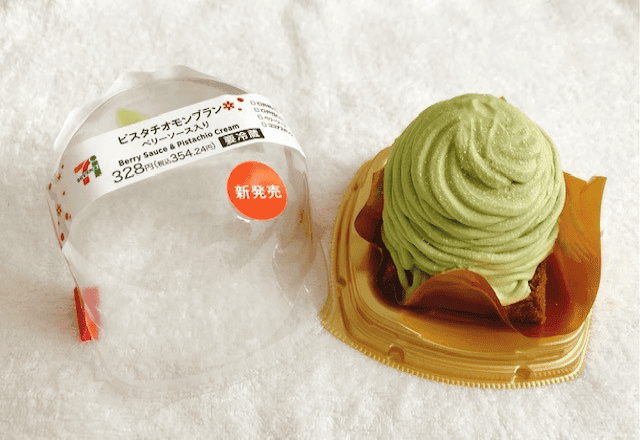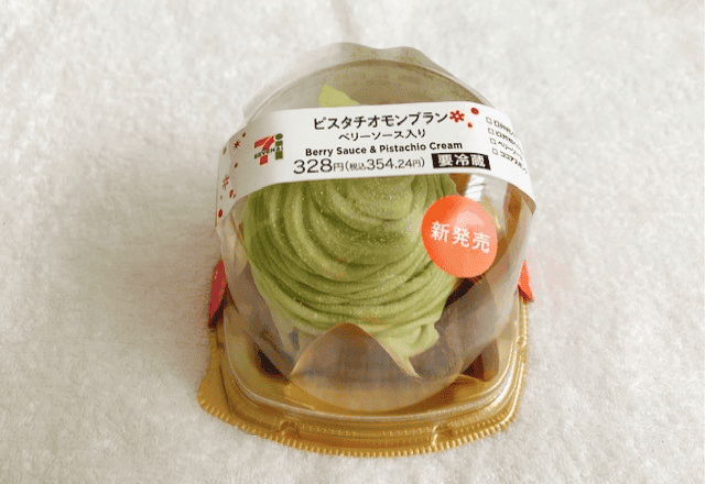 セブンイレブンから、2021年12月14日に発売された新商品『ピスタチオモンブラン ベリーソース入り』。
