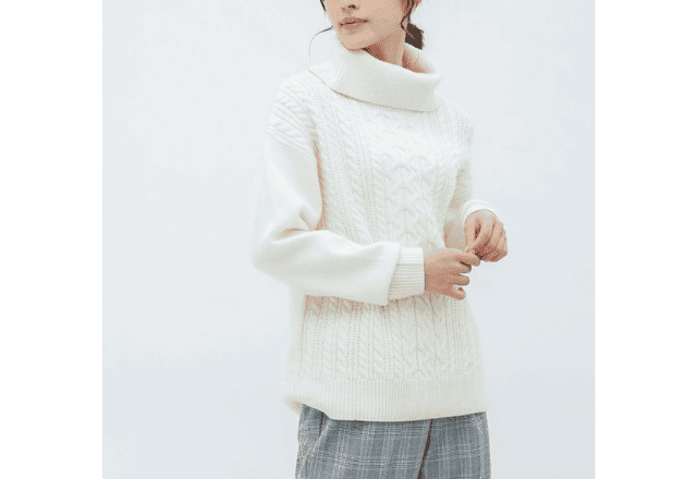 公式サイトに掲載されていた「ケーブル編オフタートル」は、ざっくりとした編み目が特徴。