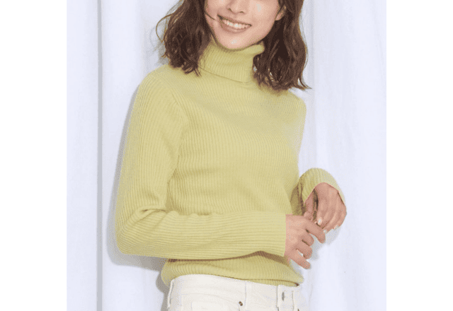 着ぶくれせずに着られそうな、あったか「リブ編タートル」です。