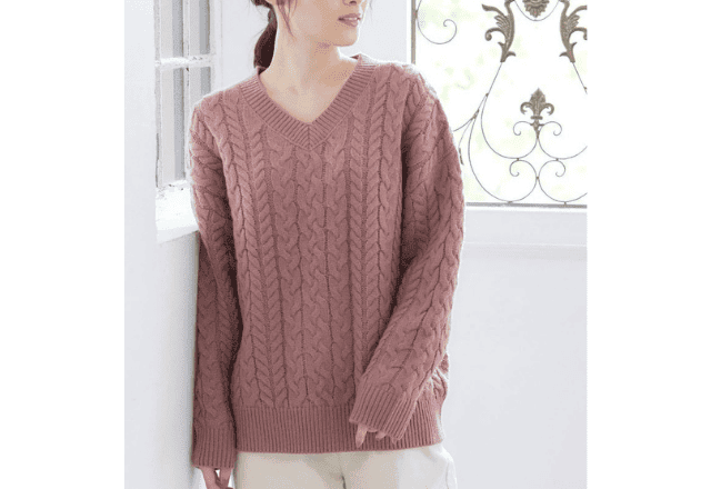 最後にご紹介するのは、「ケーブル編Vネック」。