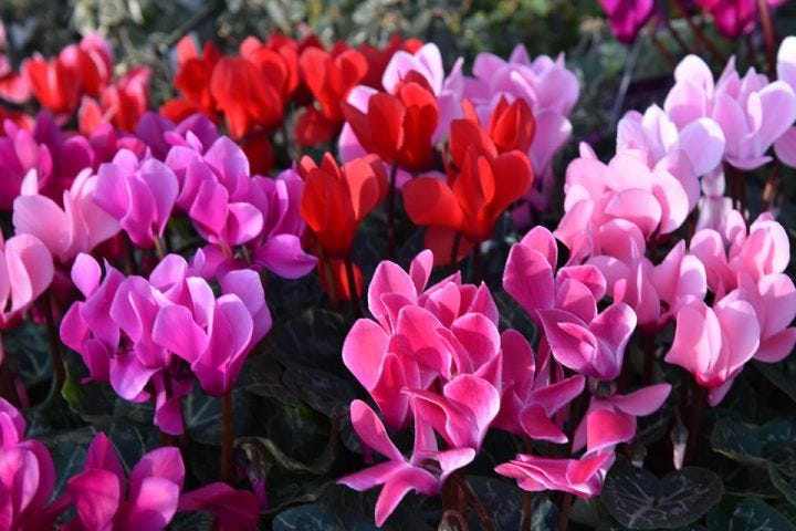 英語の花言葉に注目したいシクラメン冬を彩るお花としておすすめなのはシクラメン。花色のバリエーションも多く、赤や白、ピンクにクリーム、紫や青なども人気です。赤いシクラメンは「嫉妬」、白いシクラメンは「清純」というように花色によって花言葉もいろいろ。