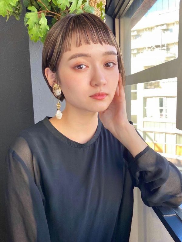 一見難易度が高そうなオン眉バングですが、すっきりとしたショートボブでオン眉バングに挑戦すれば大人女性にも似合う春のヘアスタイルを実現できますよ。