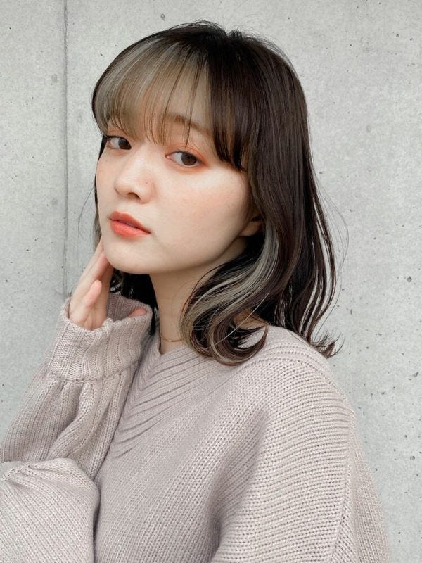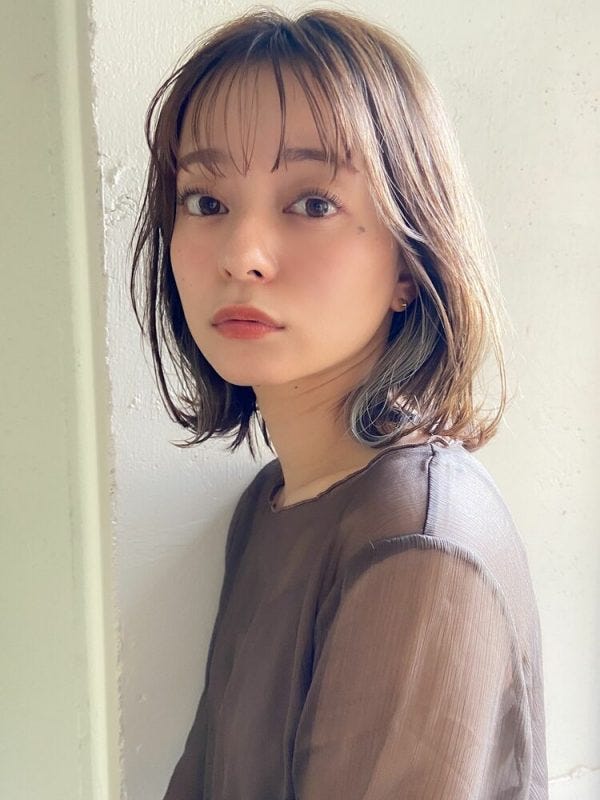 ハイトーンなカラーをアクセントにしたミディアムの髪型は、この春の人気間違いなし!