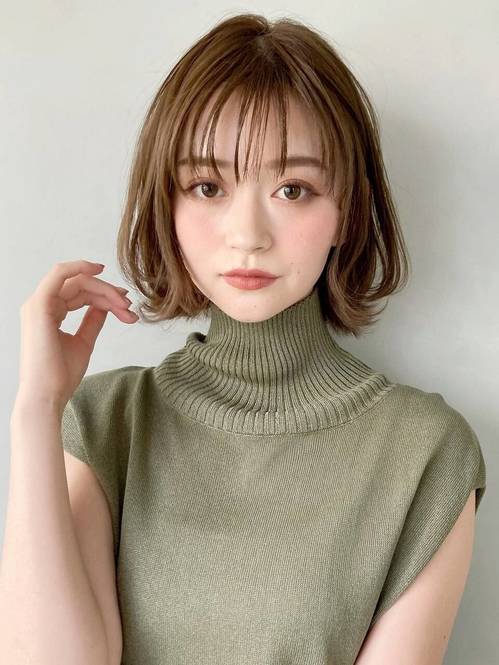 【ボブ×イヤリングカラー】40代におすすめの髪型③カーキグレージュのこなれボブ