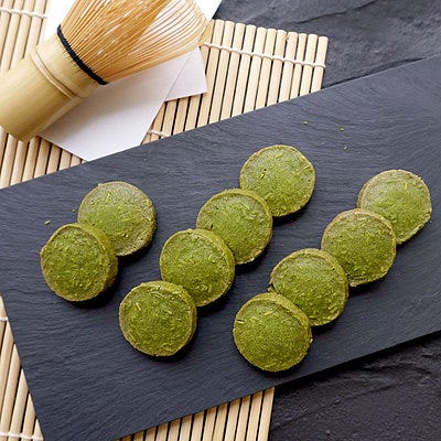 福岡県八女産の抹茶の香り豊かな味わいを楽しむことができる、人気の抹茶クッキー!食感と風味のポイントに、スライドアーモンドが入っています。