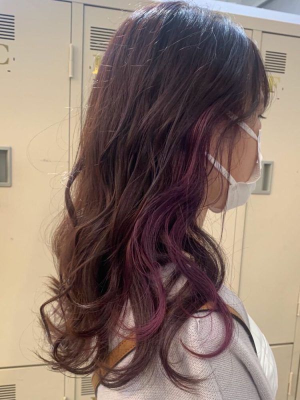 ブリーチが必要な明るいピンクは全体だと派手すぎますが、こちらのヘアスタイルのようにイヤリングカラーで取り入れピンク系の濃淡にすると、なじみやすく可愛らしい雰囲気になります。