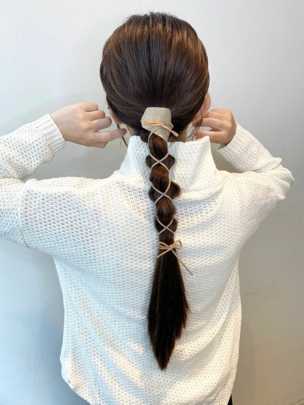 今年の春は紐を使ったヘアアレンジが人気です。紐を使うことで、シンプルなポニーテールアレンジも簡単にトレンディに仕上げることができるのでおすすめですよ。