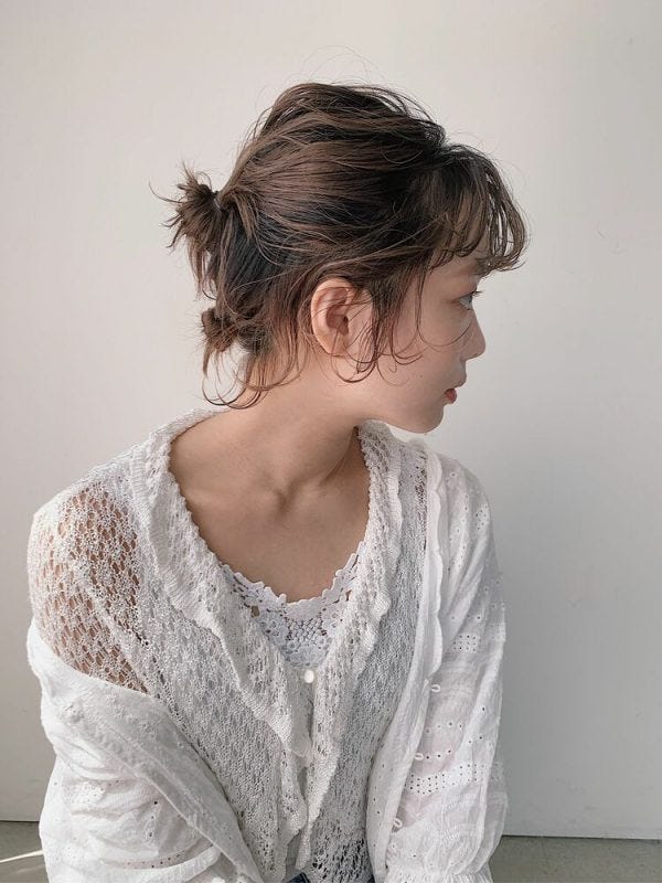 ショートヘアやボブヘアの方は、まとめ髪にすると後れ毛がどんどん出てきてしまうのが悩みですよね。そんな時は上下二段のお団子を作るのがおすすめです。