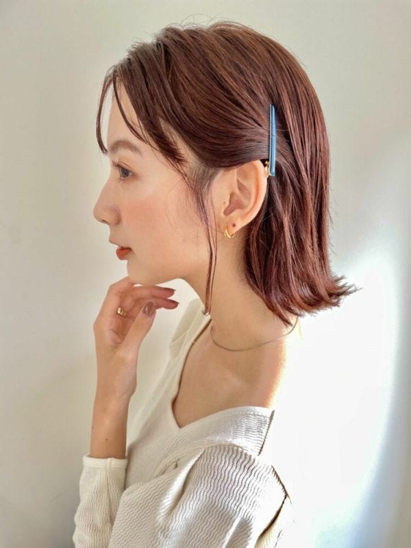 ボブヘアではバレッタで留めるだけの簡単アレンジもおすすめです。