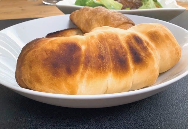あつあつのパンはバターの香り豊かでたまらないおいしさ。