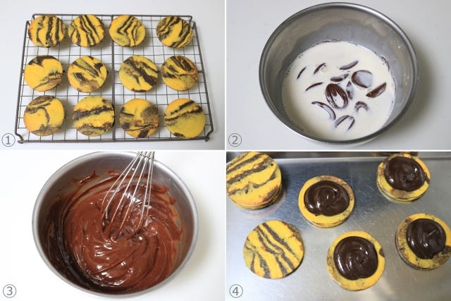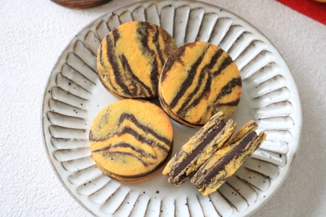 ⑤ トラ柄模様のチョコサンドクッキーの出来上がり。