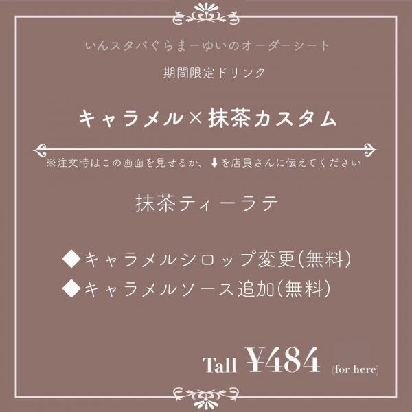 最近のマイブームはキャラメル×抹茶カスタム。キャラメルの香ばしい甘さがマッチして美味しすぎる♡