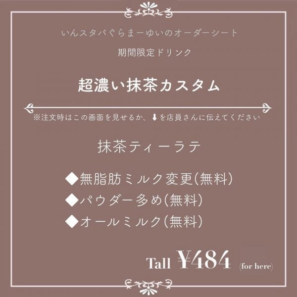 永久保存版!抹茶ティーラテ を無料でさらに美味しくする方法をご紹介。年中いつでも頼めるのでぜひ♪