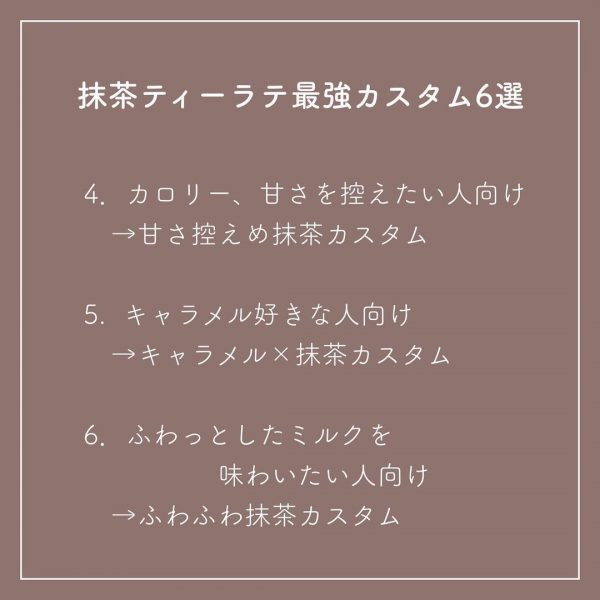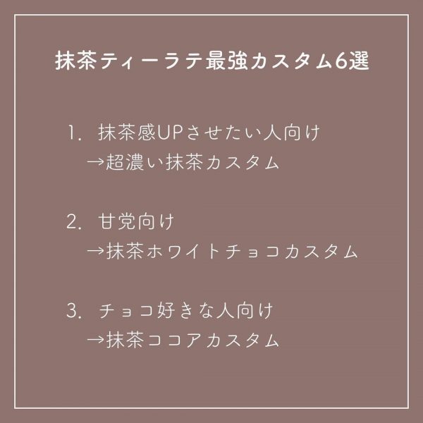 抹茶ティーラテ最強カスタム6選をご紹介していきます♪