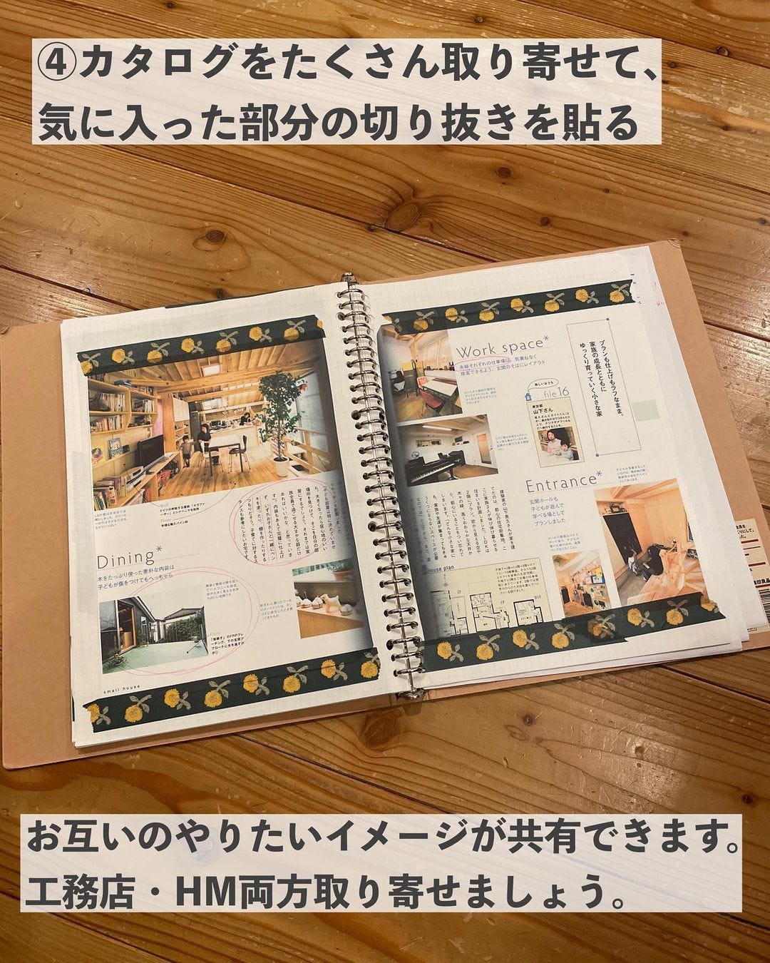④カタログをたくさん取り寄せて、気に入った部分の切り抜きを貼る