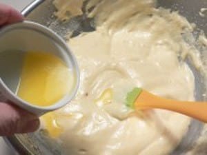 薄力粉は2回ふるう。バターはレンジか湯せんで溶かす。