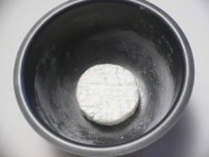内釜にバターを薄く塗り、小麦粉を薄くはたき、中央にカマンベールチーズを置く。