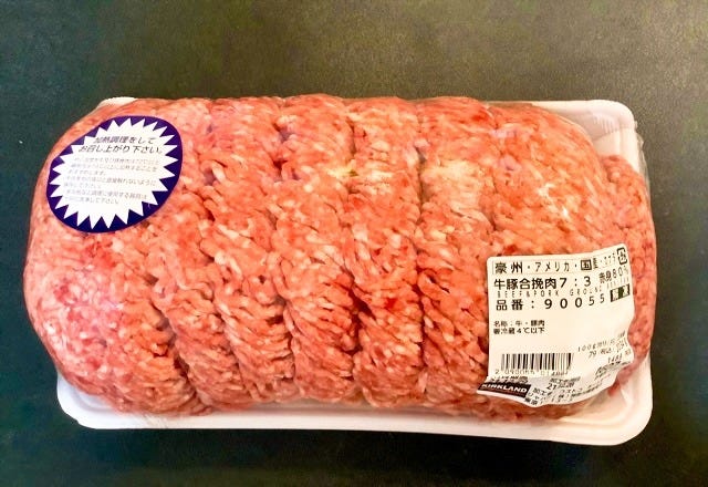 メガサイズでコスパもよい、コストコの「牛豚合挽肉7:3 赤身80%」。