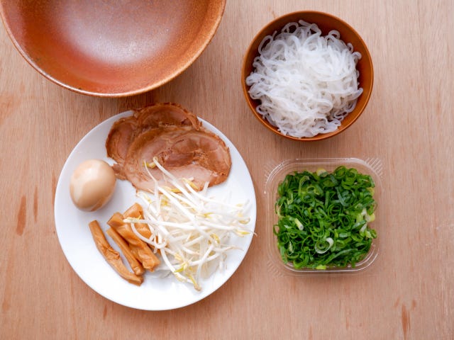 トッピングはコンビニで手軽に購入できるものばかり。白滝は賞味期限が長めに設定されているものも多いため、冷蔵庫に常備しておいても良いかもしれません。