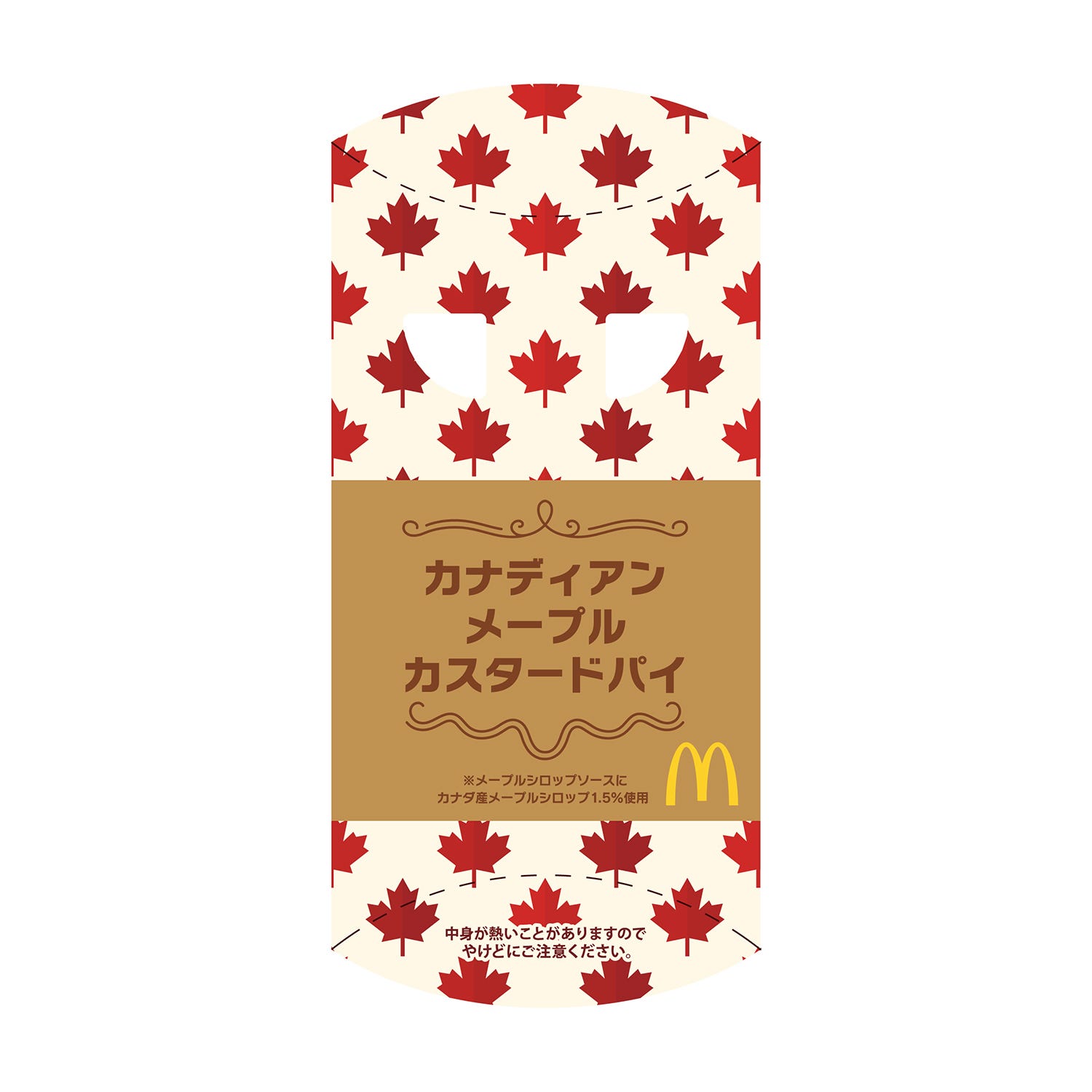 「カナディアンメープルカスタードパイ」は、サクサクのパイ生地にバニラビーンズが甘く香る、濃厚で滑らかな食感のカスタードクリームと、芳醇な香りのカナダ産メープルシロップを使用したとろけるメープルシロップソースをぎっしり詰めたホットパイ。