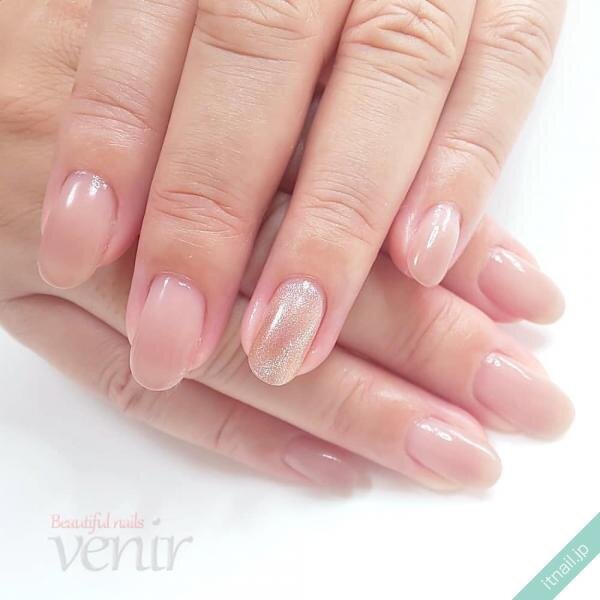 指先を動かすたびに不思議な輝きを楽しめるマグネットネイル。シンプルなベージュカラーにマグネットネイルの輝きが映え、華やかな印象に仕上がります。マグネットネイルはベージュに近いカラーをチョイスすることで肌に馴染みが良く、ナチュラルに取り入れることができます。