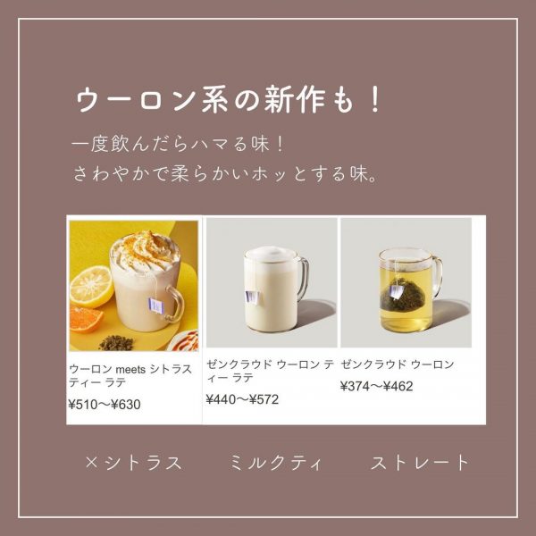 ほうじ茶の他にもウーロン系の新作は、一度飲んだらハマる味!