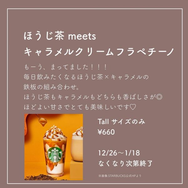 今回は「ほうじ茶meetsキャラメルクリームフラペチーノ」をご紹介します。